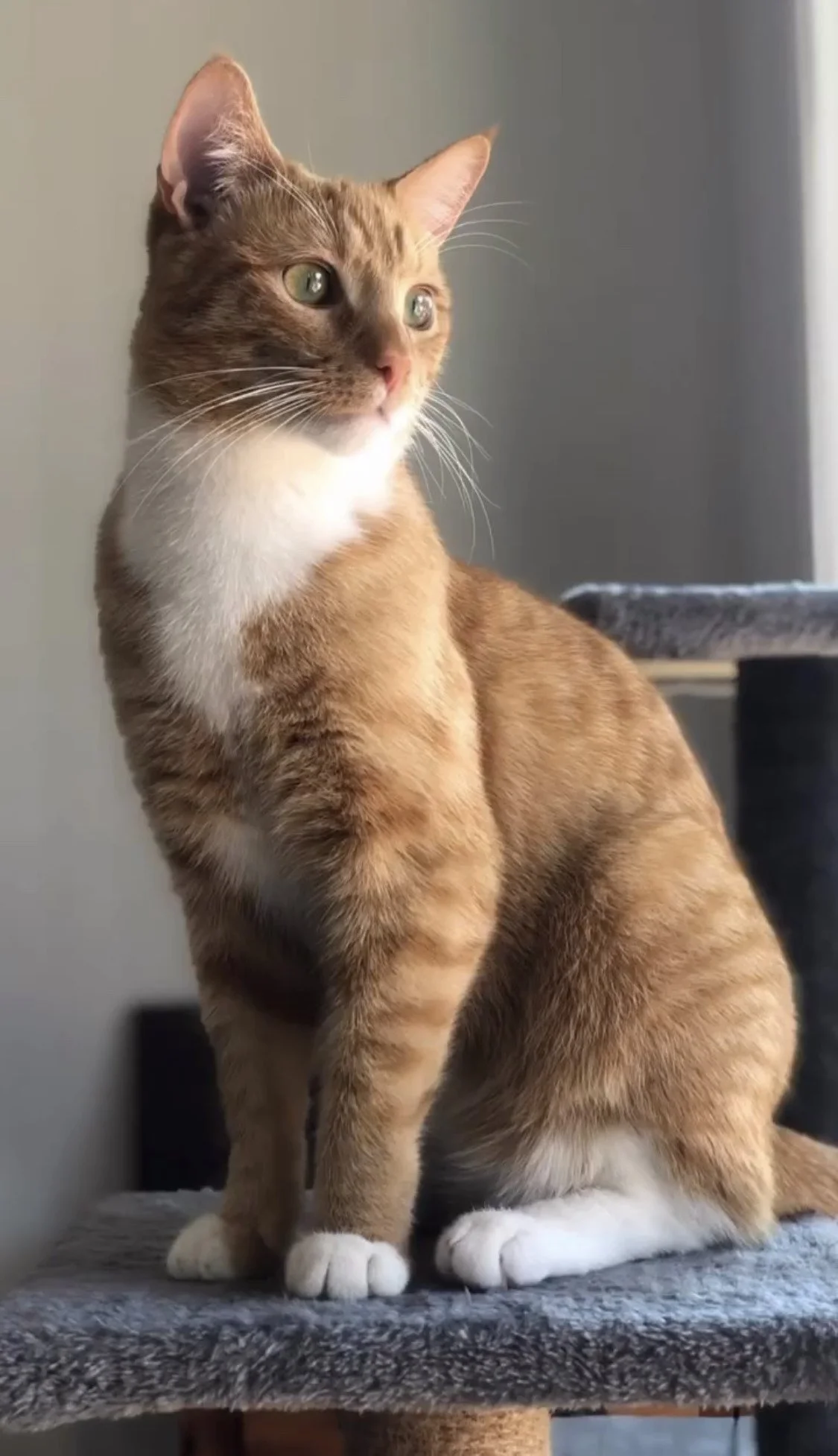 Dumpy is a very chatty kitty who loves to run around but most of all, he likes to sleep in the windows and soak up the sun! ☀️ he can be a bit of a trouble maker and loves to steal his sisters food when we are not looking 🫣 He lovesssss Temptation treats and comes running every time he hears the box shaking. He loves greeting my partner and myself at the door with head butt’s and nudges 😍 He is not very fond of strangers and will shy away if approached. He has always been an outside cat but for his safety, we are training him to be an indoor kitty🐈