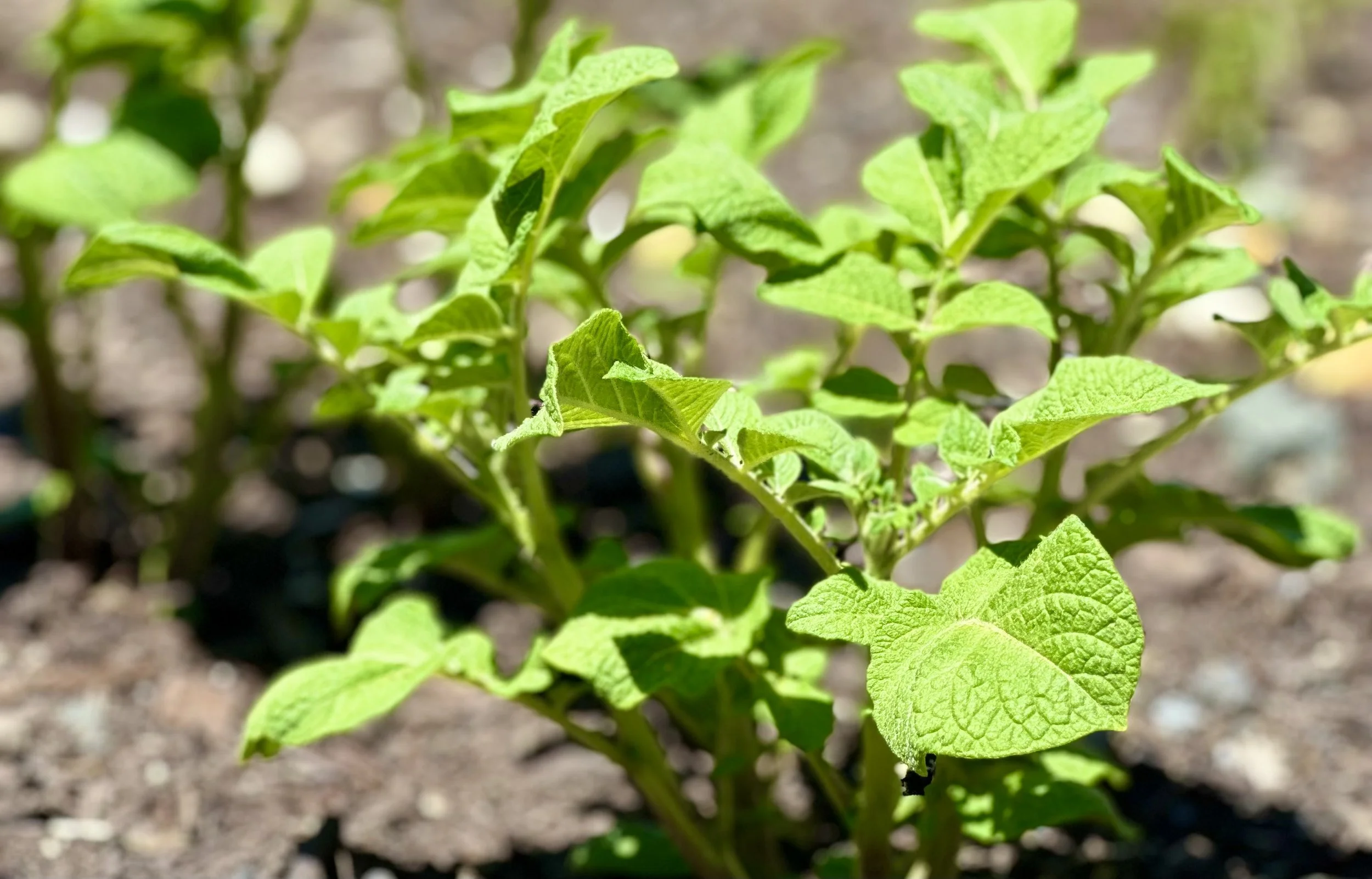 The first productive plant in the raised community planter boxes at Moroki, planted with care by one of our residents.